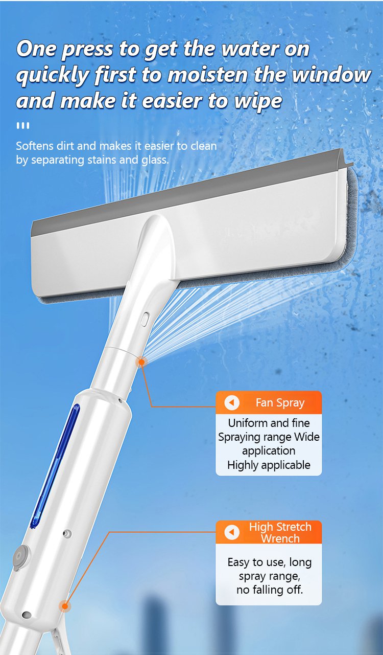 Extended Spraying Double-Sided Glass Cleaner Squeegee