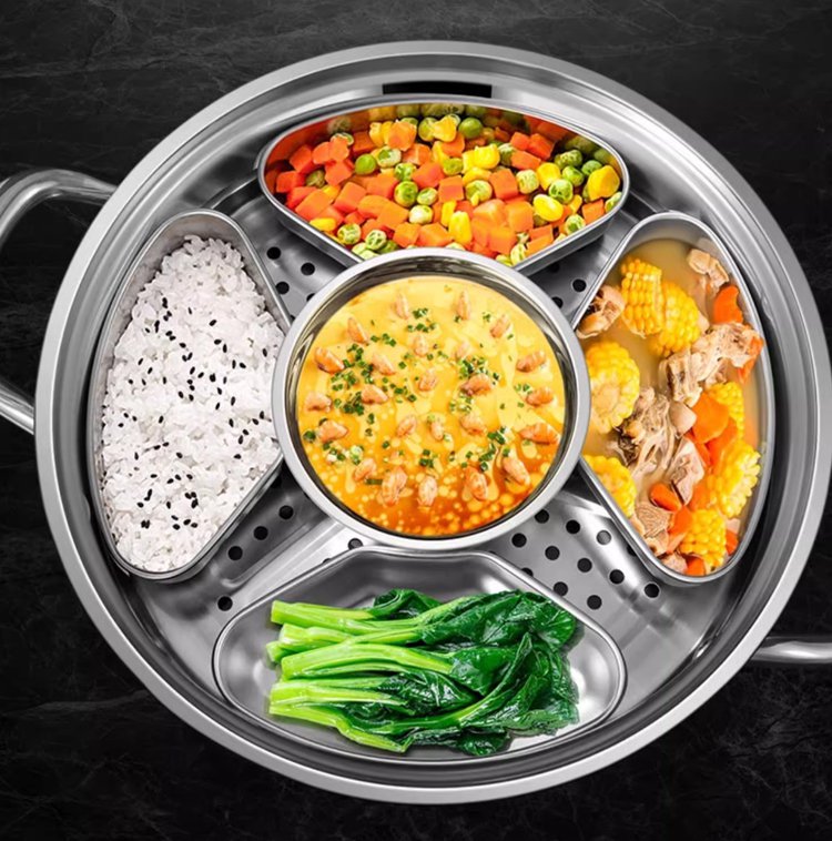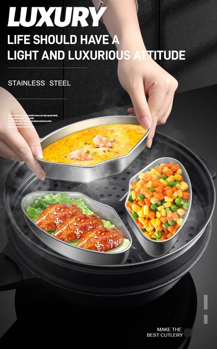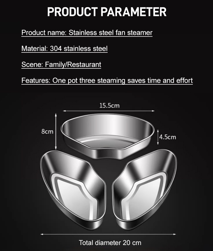 304 Stainless Steel Fan-shaped Steaming Tray with Lid